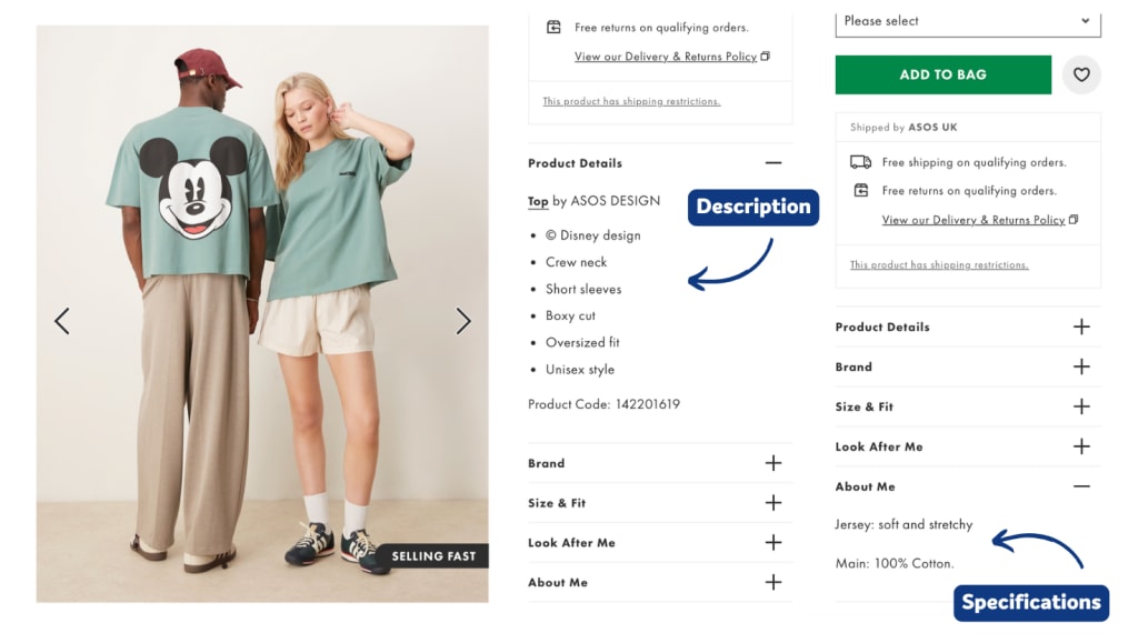 Images: High-quality images from multiple angles to help customers visualize the product.